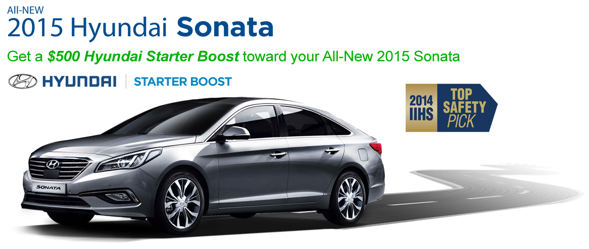 With all of these innovations and a gorgeous interior designed with comfort and the driver's needs in mind, the sweetest song you'll ever hear is the purr of the all-new 2015 Hyundai Sonata's ignition. You'll be able to bring home an all-new Hyundai Sonata from our Hyundai dealership in Algonquin, so visit Rosen Hyundai for more information about Hyundai's compositional masterpiece today! When you do, don't forget about the Hyundai Starter Boost deal. Open up a BoostUp account and you will instantly receive $500 toward the purchase of an all-new Hyundai Sonata!